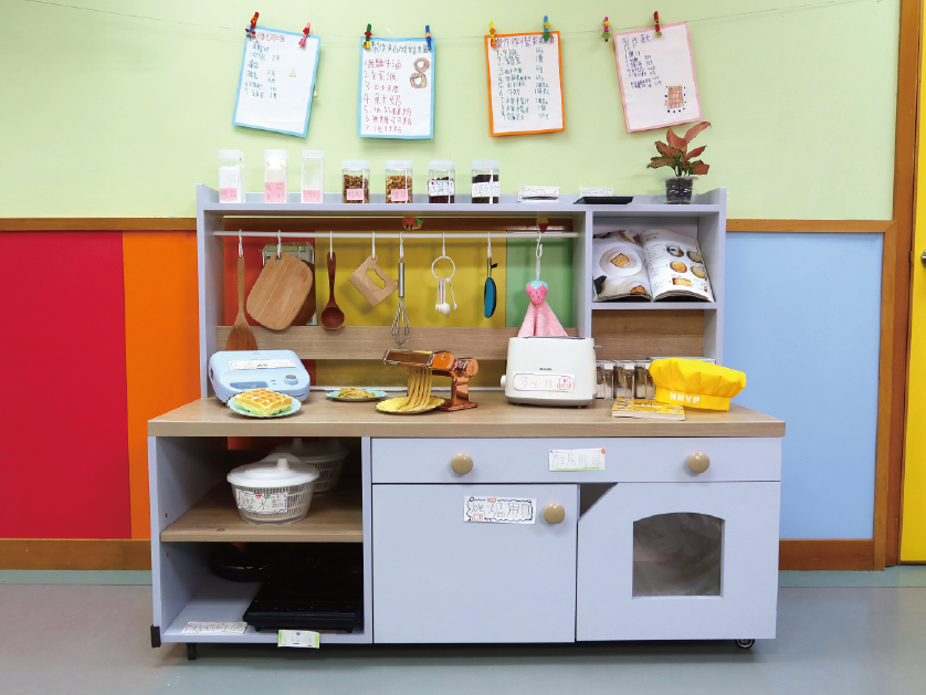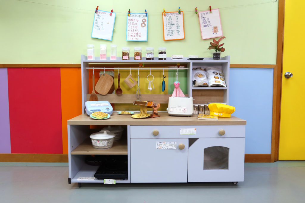 小廚房、圖書角及唱遊角等多功能活動場域,配備豐富的遊戲、玩具、視聽及電腦輔助教材,營造安全、多元、有趣且具啟發性的成長環境,在學生自由遊戲、生活學習及個人化優勢培育中發揮著關鍵作用。